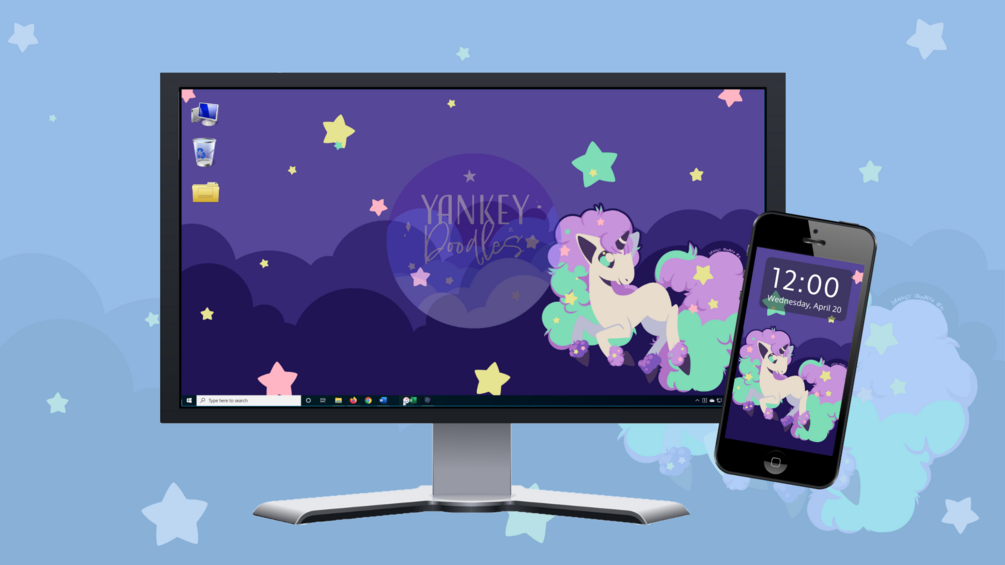 I adore Galarian Ponyta's design so much that I made her into a desktop wallpaper for anyone who would like to use it! The wallpaper is a 8000 x 4500 pixels and is a digital download and should fit most screens. As a bonus, I also designed a mobile background in case that would be better.