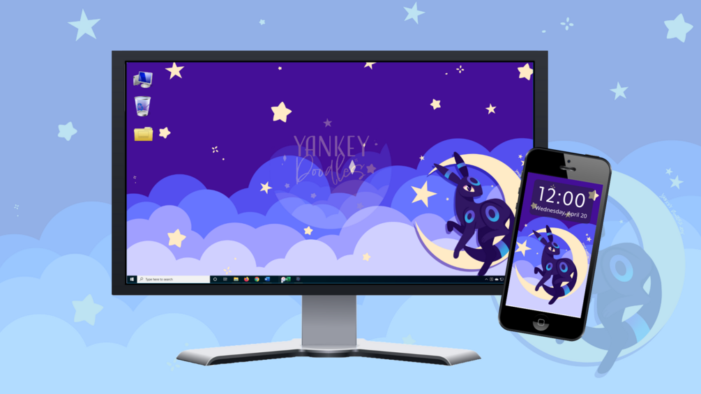InstagramFacebookA digital file of the wallpaper of your choice, desktop or desktop and mobile featuring art of Umbreon.